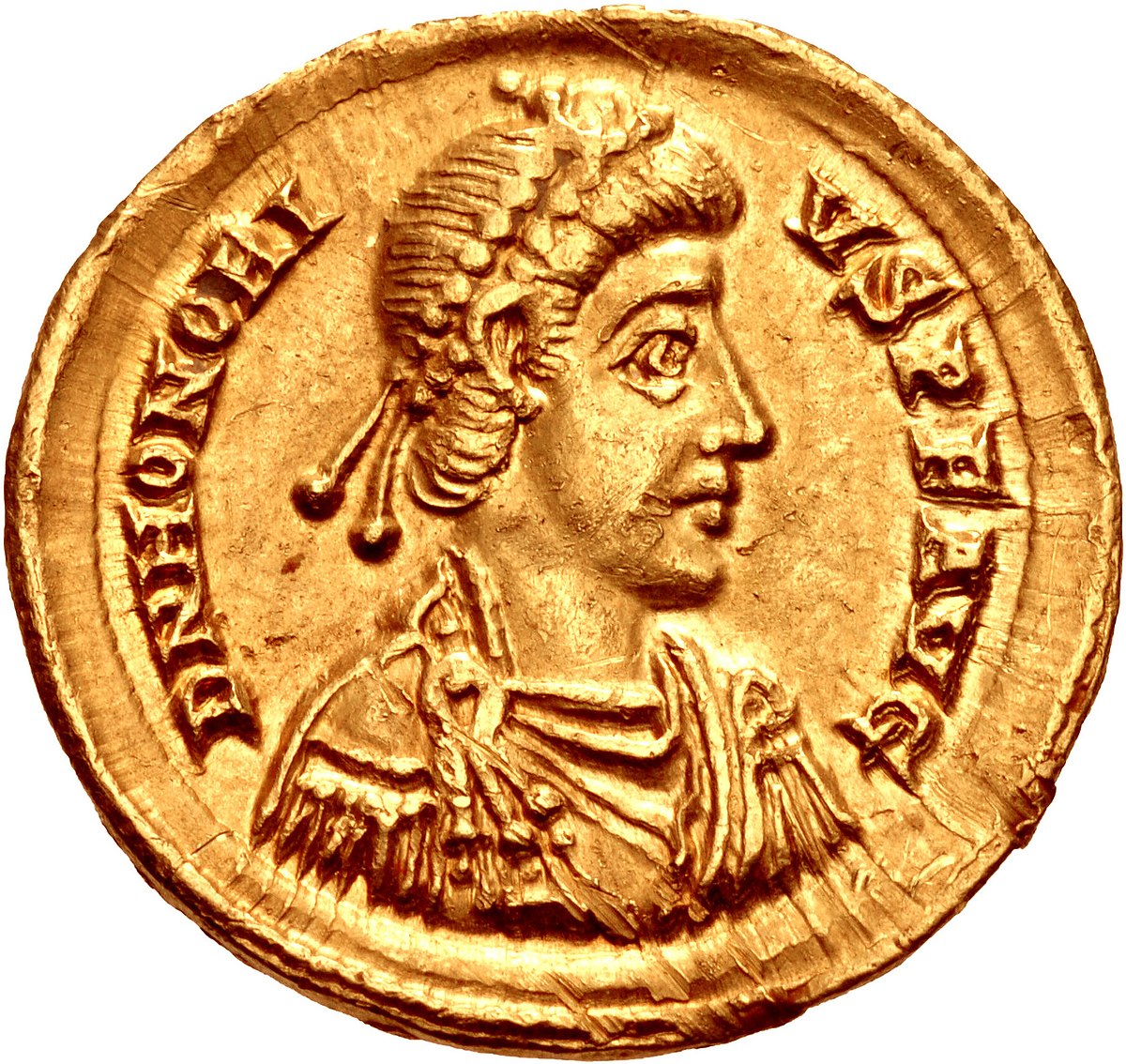 Flawiusz Honoriusz (Flavius Augustus Honorius) urodził się dnia 9 września 384 roku n.e. Panował w latach 395-423 n.e. w zachodniej części Cesarstwa Rzymskiego.