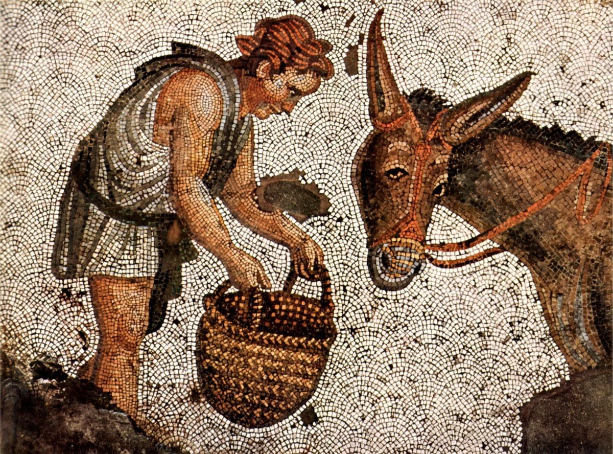 - IV okres (25 czerwiec – 21 lipiec) – w tym okresie większość ludzi odbywa żniwa. Trzeba zakończyć orki. Po pierwszej orce ziemię należy rozkruszyć, to znaczy zaorać powtórnie, aby rozbić grudy. Powinno się siać wykę, soczewicę, groszek siewny, wykę soczewicowatą. W winnicach trzeba rozkruszyć ziemię po orce po raz drugi;